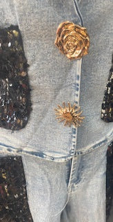 Blue Jean and Black Sequence Vest Set