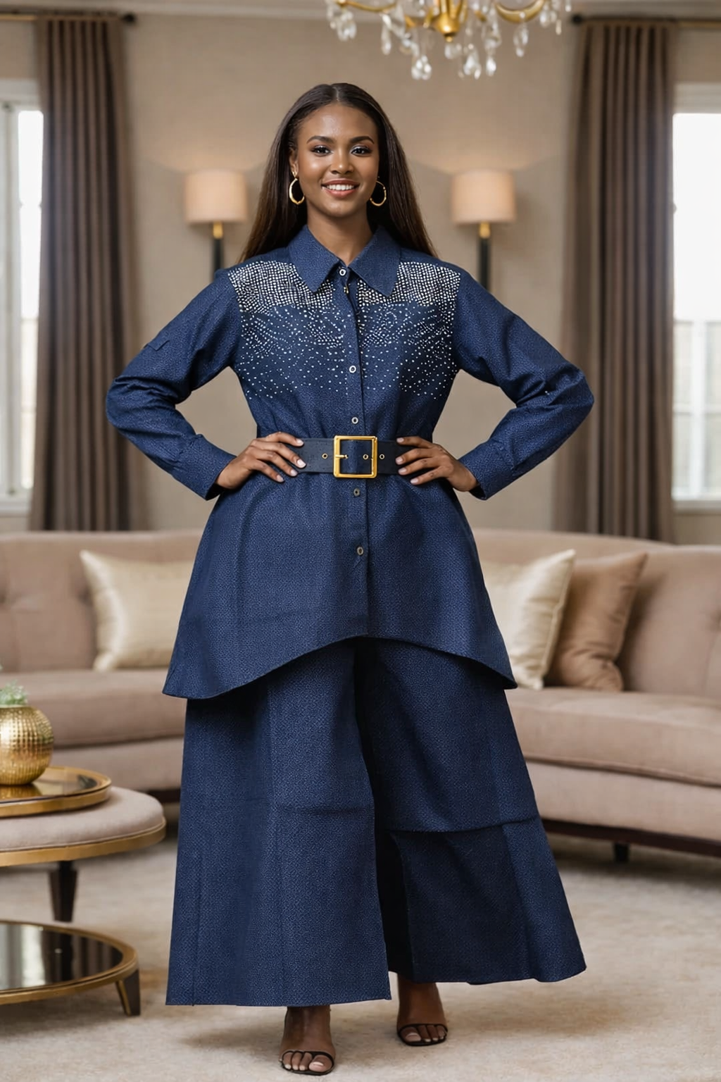 Denim wide leg pants Set
