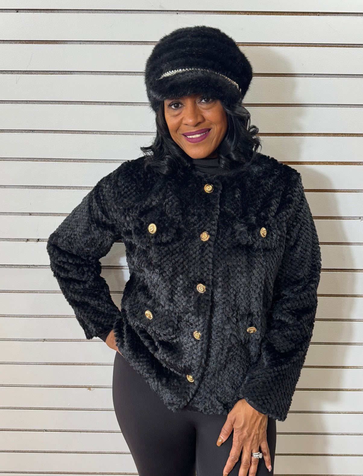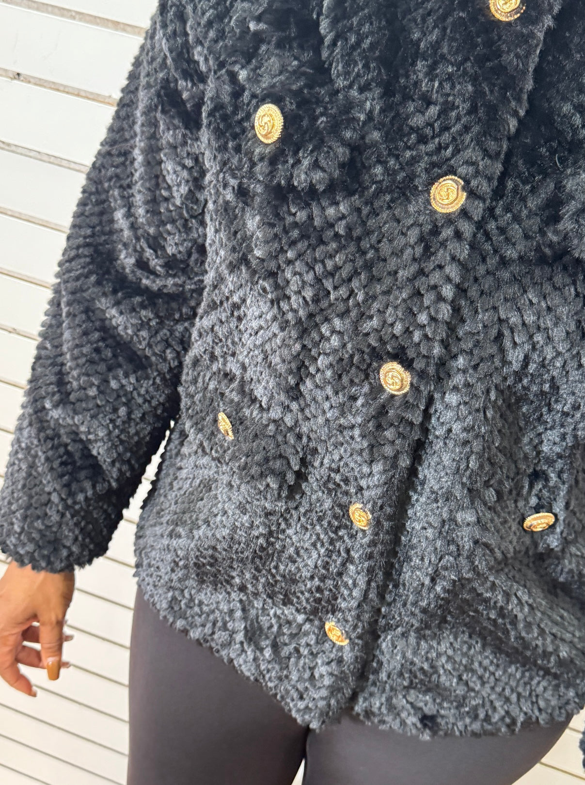 Faux fur jacket soft and shiny has gold buttons one size sm-xlg