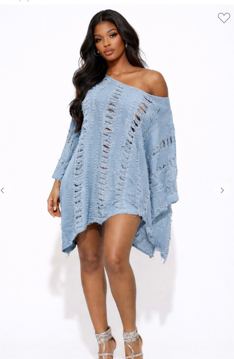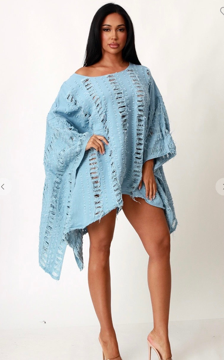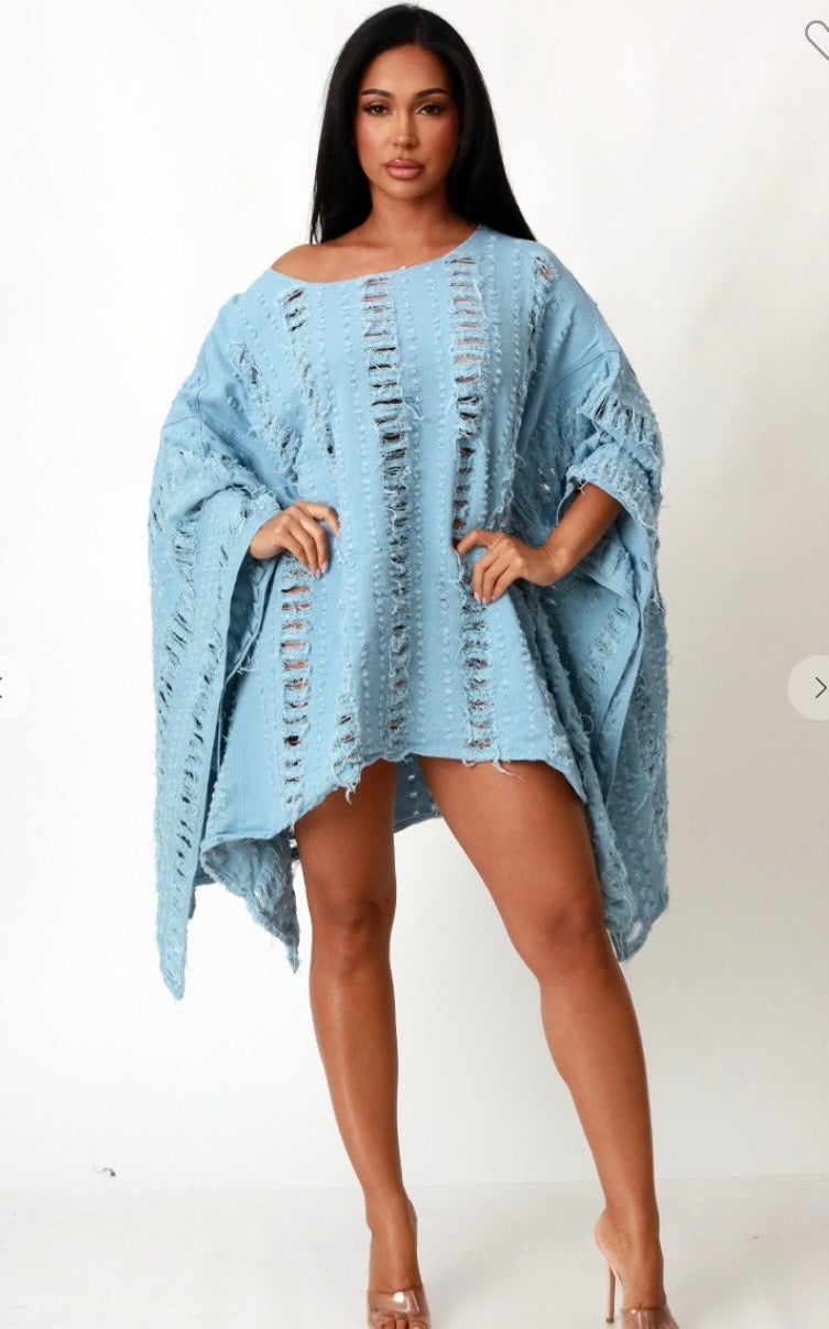 Ripped Denim Asymmetric Oversize Top