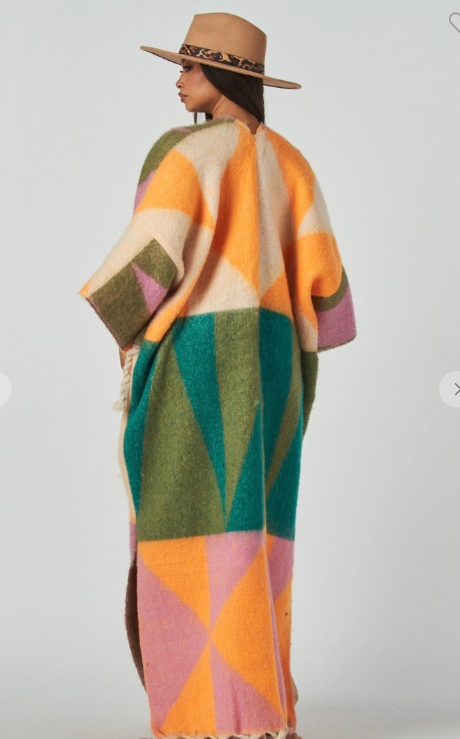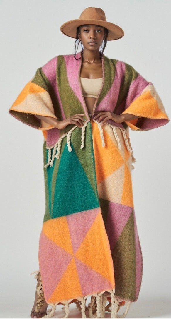Pink multicolor duster with fringe one size