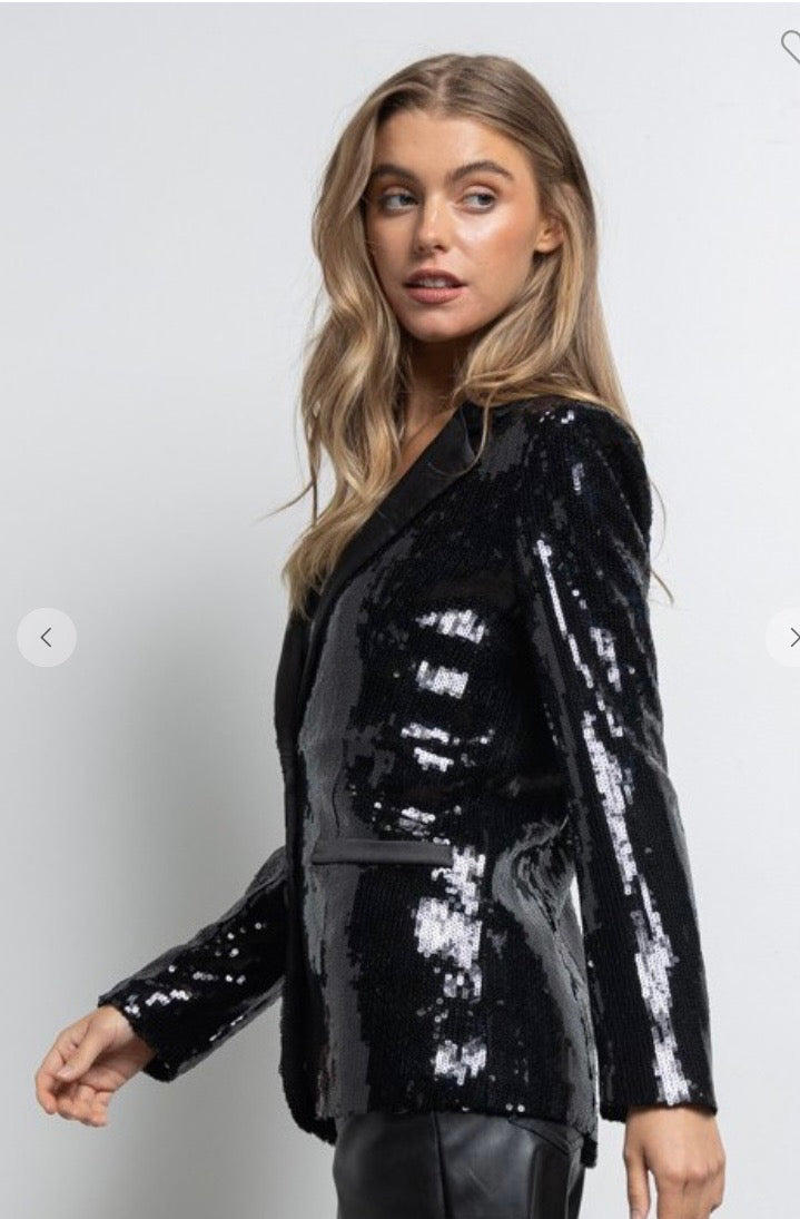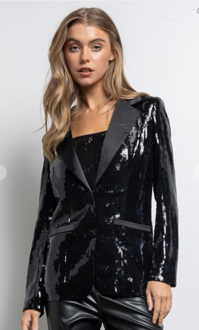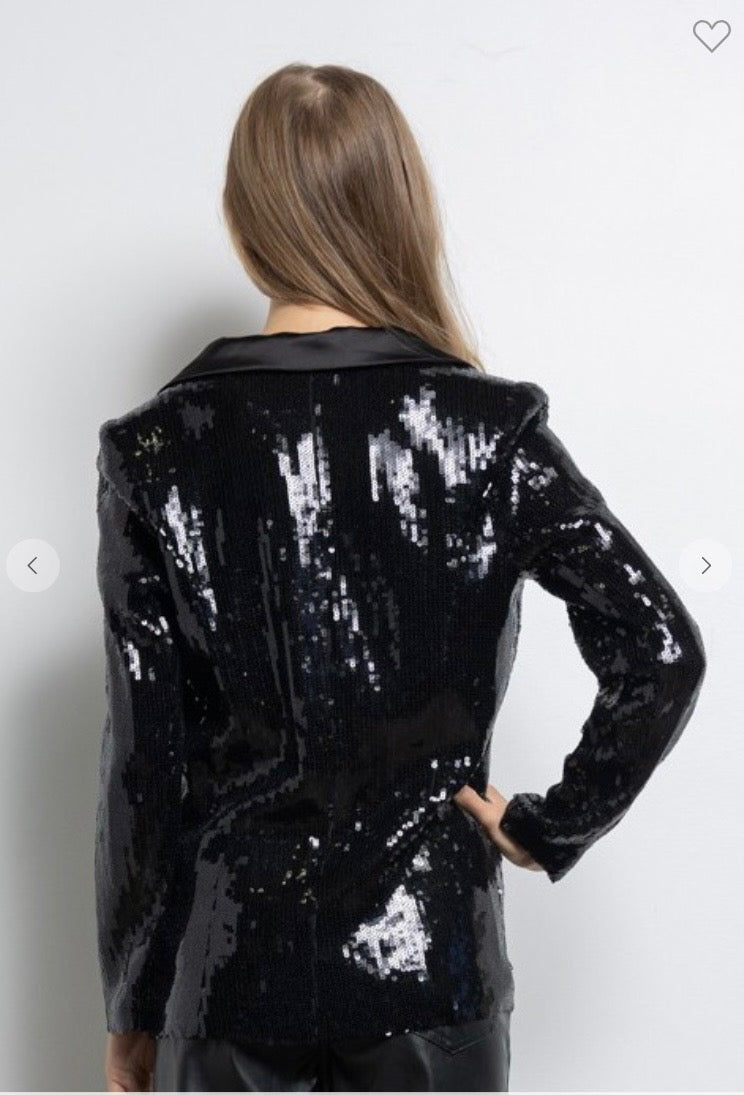 You will love this black sequin blazer has a satin lapel. You can dress this up or down.