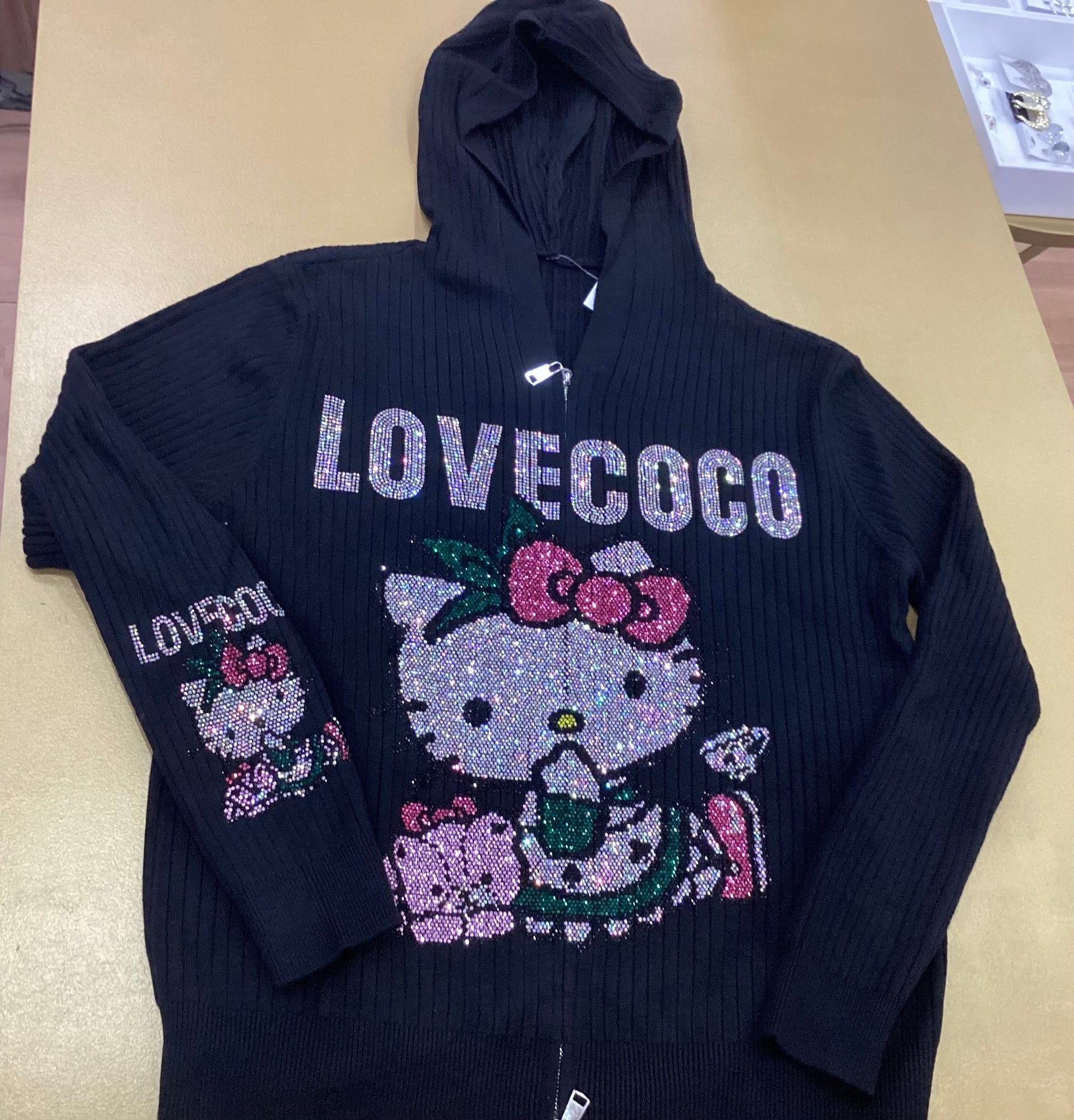 You will love this bling out hello Kitty black zip up sweater with a hood has lots of stretch one size small through large