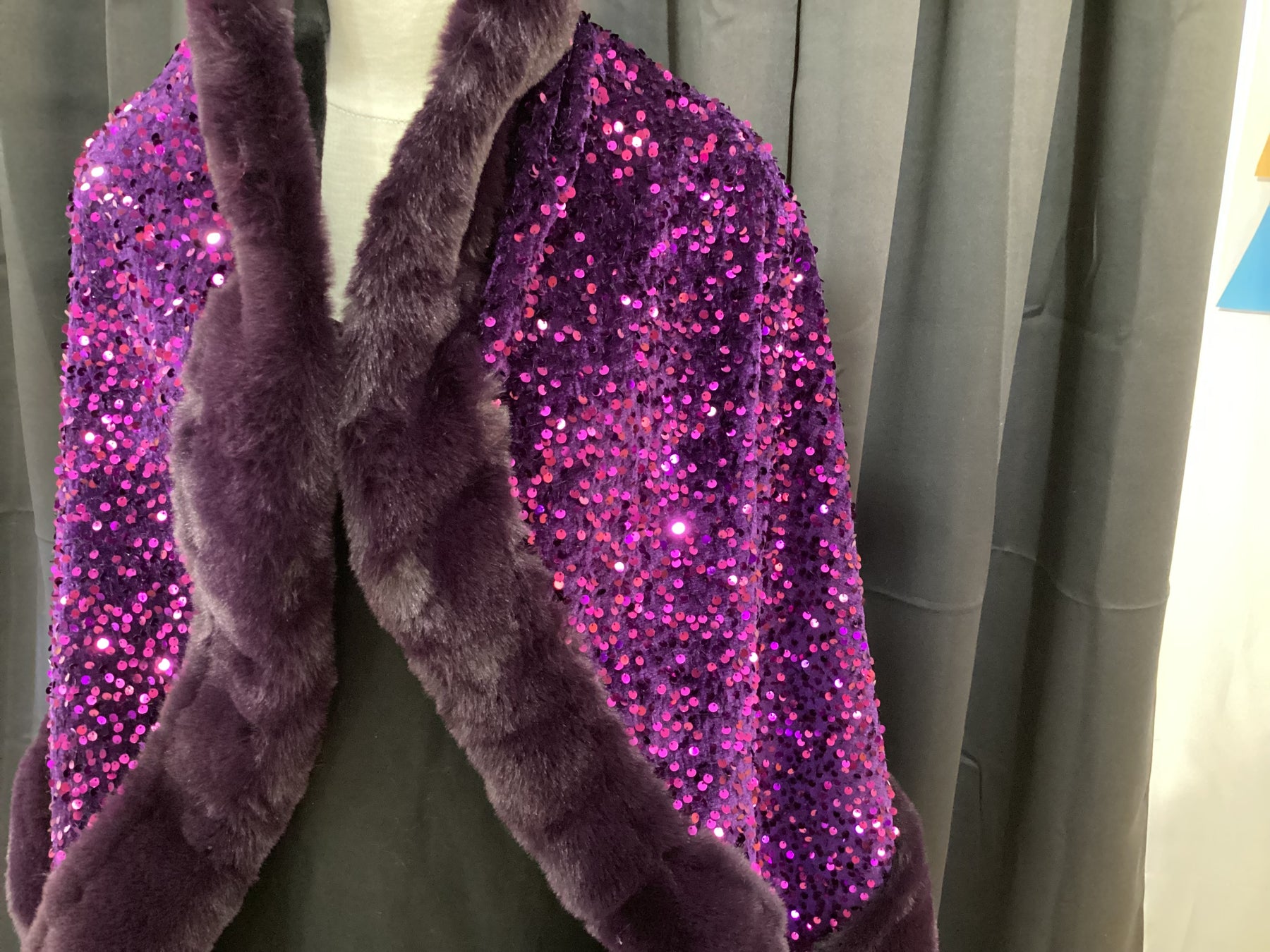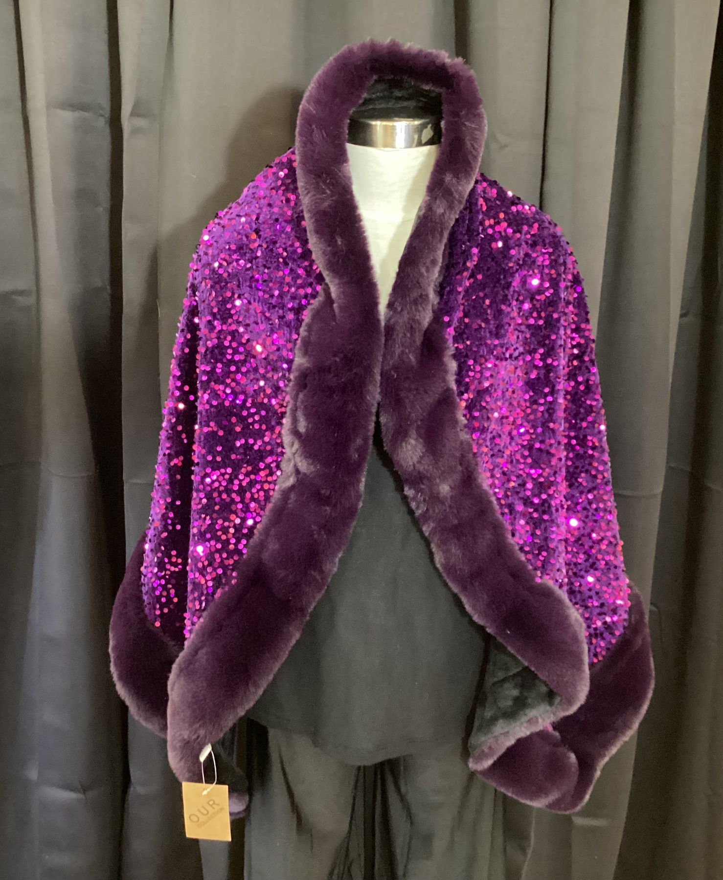[{"id":43900879437866,"title":"One size purple","option1":"One size purple","option2":null,"option3":null,"sku":null,"requires_shipping":true,"taxable":true,"featured_image":null,"available":true,"name":"Purple and Black sequin shawl with faux fur - One size purple","public_title":"One size purple","options":["One size purple"],"price":5999,"weight":91,"compare_at_price":null,"inventory_management":"shopify","barcode":null,"requires_selling_plan":false,"selling_plan_allocations":[]},{"id":43900879470634,"title":"One size black","option1":"One size black","option2":null,"option3":null,"sku":null,"requires_shipping":true,"taxable":true,"featured_image":null,"available":true,"name":"Purple and Black sequin shawl with faux fur - One size black","public_title":"One size black","options":["One size black"],"price":5999,"weight":91,"compare_at_price":null,"inventory_management":"shopify","barcode":null,"requires_selling_plan":false,"selling_plan_allocations":[]}]