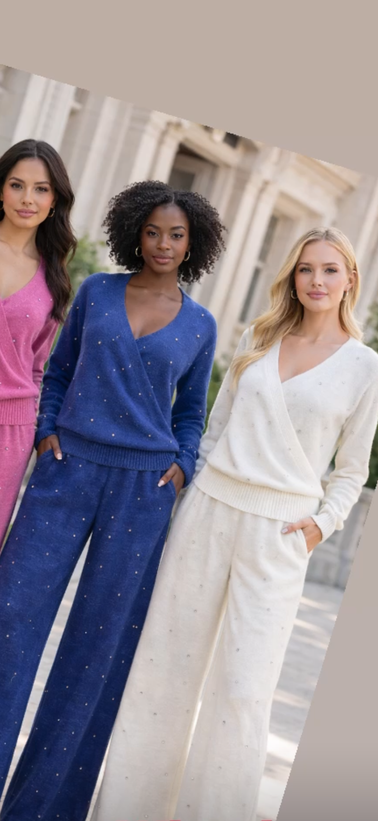White rhinestones wide leg pants sweater set